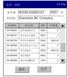 输入采购单号,下载采购明细,根据明细进行点货,并在相应明细中输入实际收货数量。