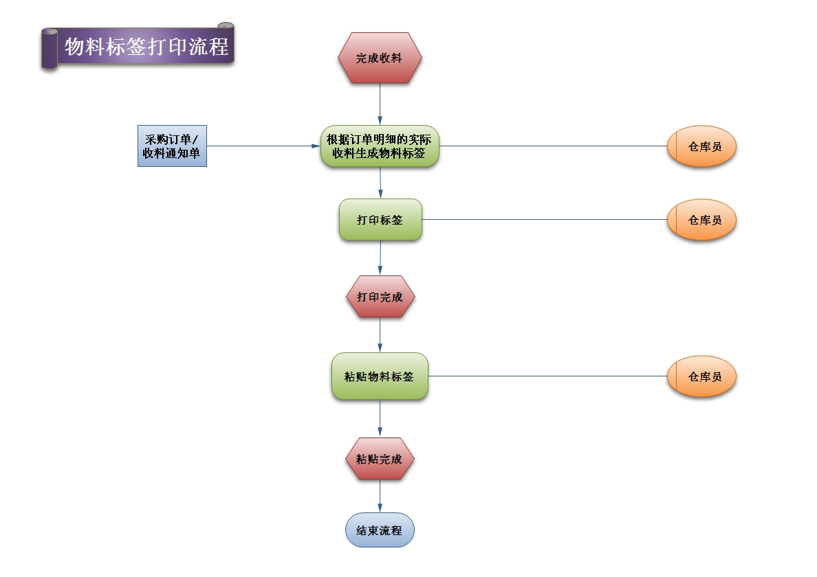 根据实际收货明细及实收数量自动生成序列号(S/N), 并通过条形码打印机打印成物料标签,信息包括(物料名称,型号,批次,订单号,S/N),已打印过的标签序列号将被记录到数据库,不会重复打印;