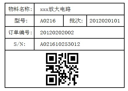 物料标签样例,可根据实际要求调整
