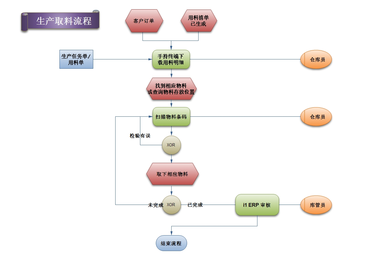 扫描物料标签,核对是否在取料明细中,如有误,及时提醒作业人员,防止取错料,直到完成取料,保存数据。