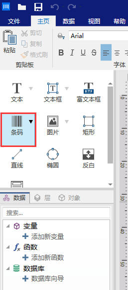条码设计软件中,单击左侧工具箱中的创建条形码按钮,鼠标点击您想放置二维码在标签中的理想位置。