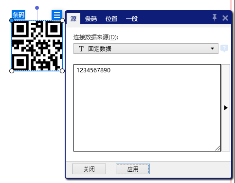 输入数据源内容,如果二维码有固定的数据内容可直接复制粘贴或手动输入。单击完成。二维码就在标签中生成了。