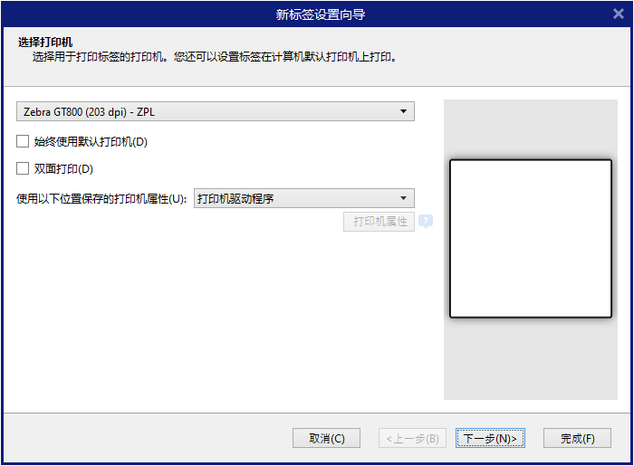 2. 在弹出的“新标签标签设置向导”中,选择所需合适的打印机,单击 下一步。