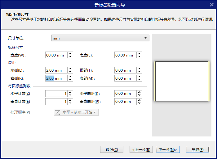 5.设置标签尺寸,您可以在此对标签的宽度和高度进行设置。