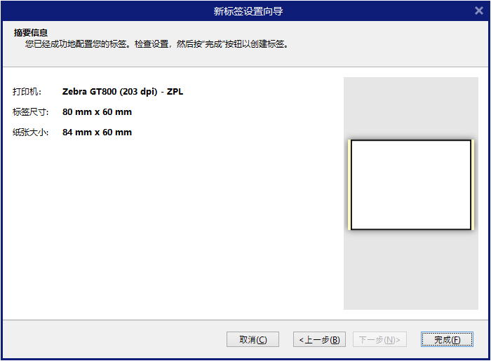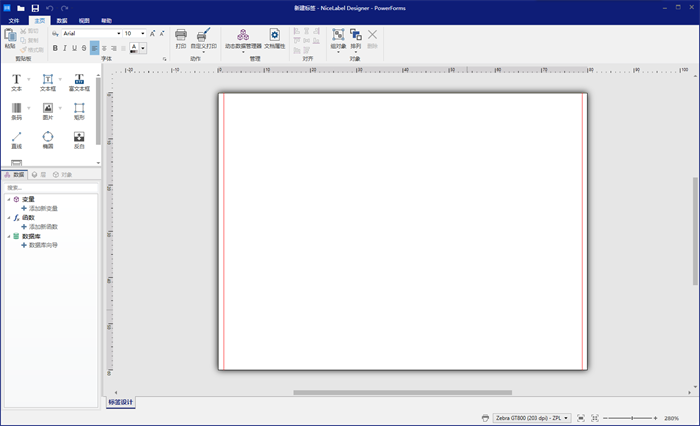 单击完成按钮,新的空白标签将打开。至此,一个新的NiceLabel标签创建完成,您可以制作条码标签了。