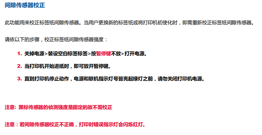 • 打印机会自动输出两张标签,此过程中会校正间隙传感器。