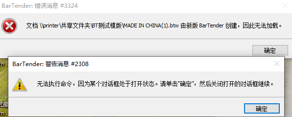 BarTender Designer打开文档文件时,出现错误消息#3324