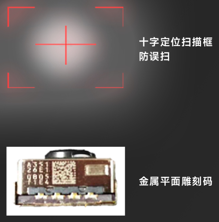 激光雕刻在PCB表面的微小二维码,激光雕刻在金属材质表面的微小二维码,印刷在标签上的细小条码,曲面/反光/彩色背景上的复杂条码,低对比度条码,隐形码