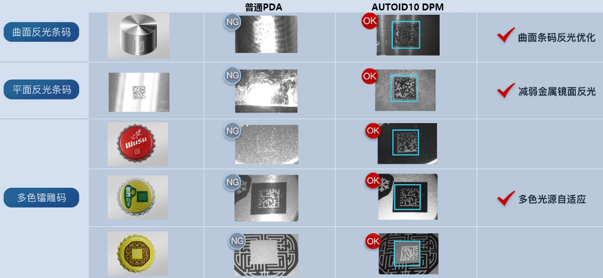 蓝色光源识读金属曲面.反光.低对比度DPM码