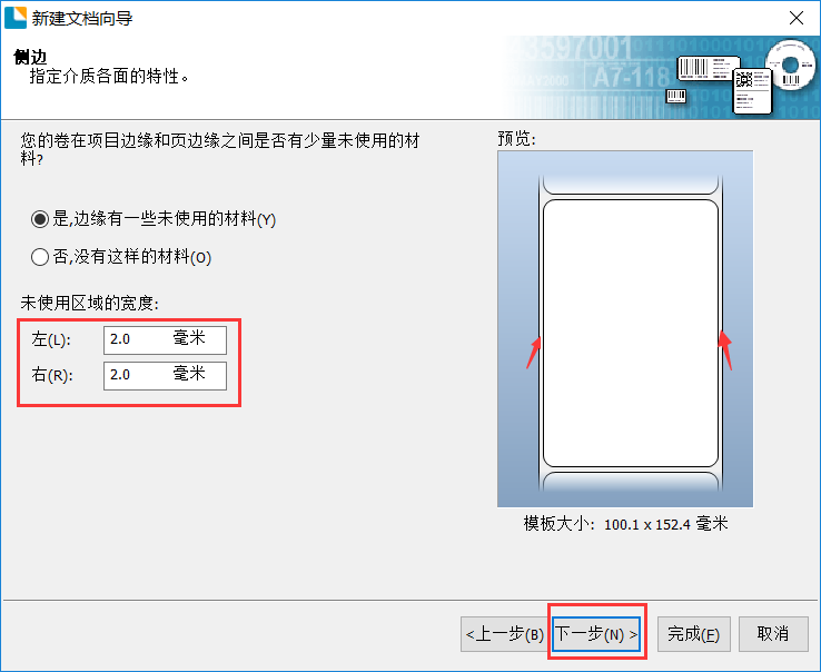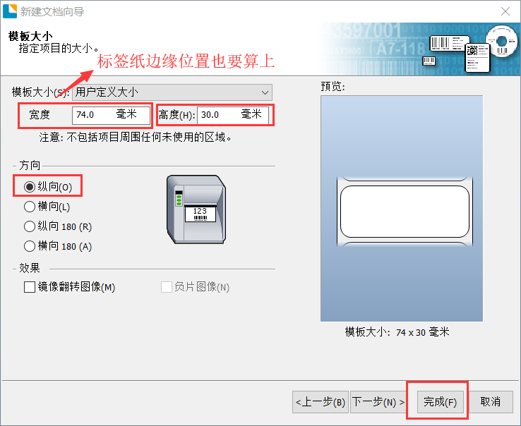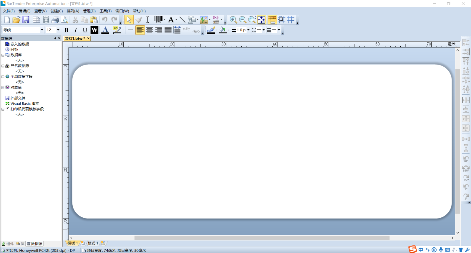 假设上面是我们这次需要用到的新标签尺寸: 宽度:70mm 高度:30mm ;左右边缘:2mm 根据使用标签的大小尺寸进行如下设置步骤: 1.打开bartender软件,根据向导,选择空白模板,点击下一步。(若没弹出向导,点击左上图标) 2.选择打印机,点击下一步。 3.选择指定自定义设置,点击下一步。 4.选择每页一个项目,点击下一步。 5.标签边缘位,请按标签实际情况填写,然后点击下一步。 6.选择标签形状,点击下一步。 7.输入跟标签一致的宽度(这里宽度填74mm,因为也要把标签左右边缘的底纸各2mm也算上),高度,方向为纵向,然后点击完成。 8.新的空白标签模板已经算建立完成,我们可以在标签空白处去添加我们需要的内容和条码数据了,欢迎大家继续关注下一篇<如何去编辑标签内容> 广州K8一触即发人生赢家条码 Domaingz (http://www.acjiashishi.com) Bartender标签打印软件专业代理,欢迎来电咨询,我们本站提供的条码生成器也是一个方便好用的在线条码生成工具。 软件开发技术团队提供ERP条码系统接口程序开发,条码标签打印系统开发,我们是自动识别应用软硬一体的系统集成供应商。