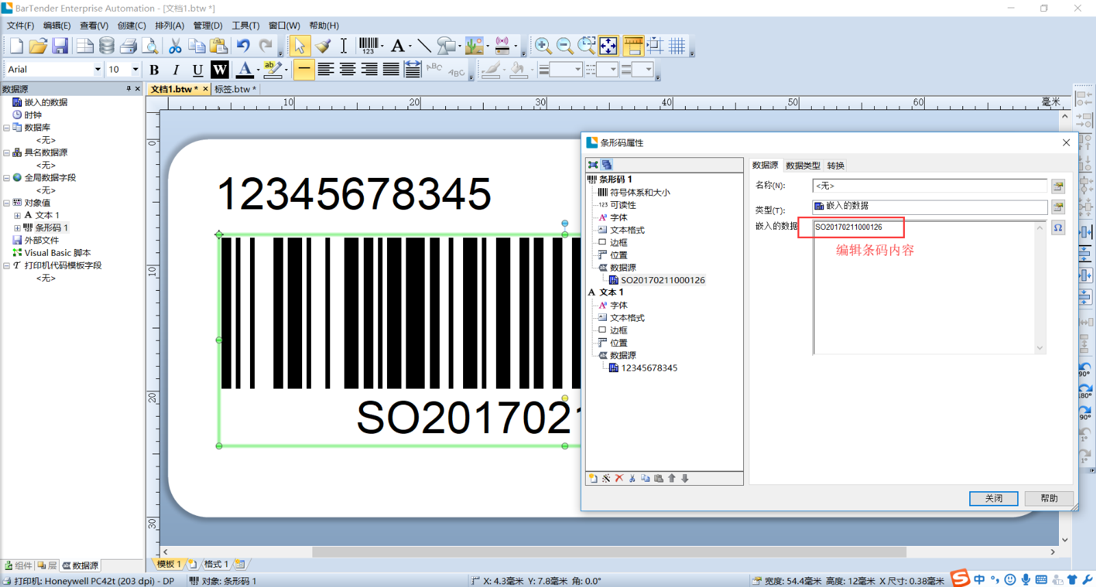 Bartender如何编辑标签内容