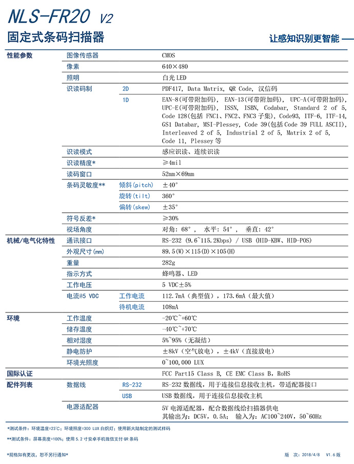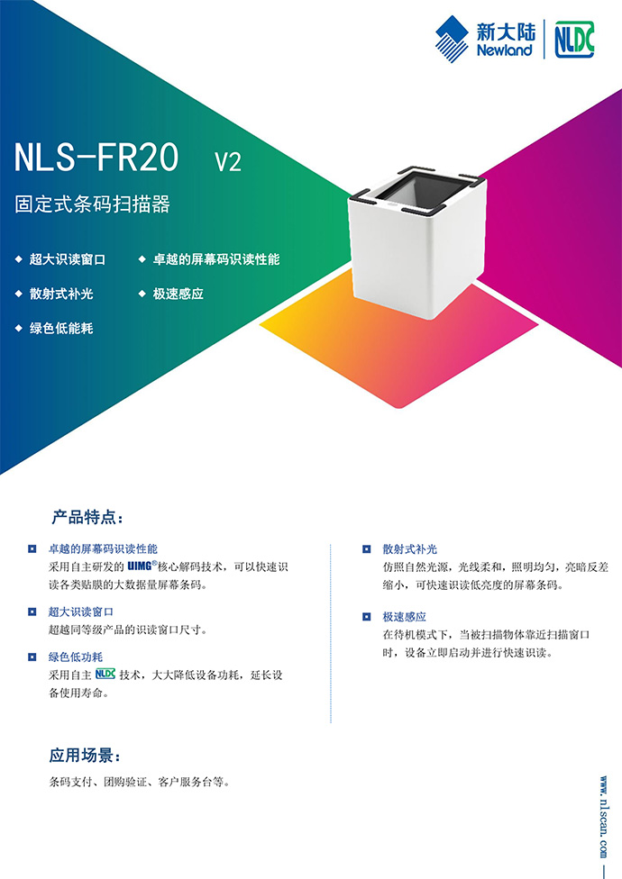 NLS-FR20 v2系列固定式条码扫描器可读取手机屏幕和纸质文档上的条码信息,主要应用于条码支付、团购验证、客户服务台等K8一触即发人生赢家。