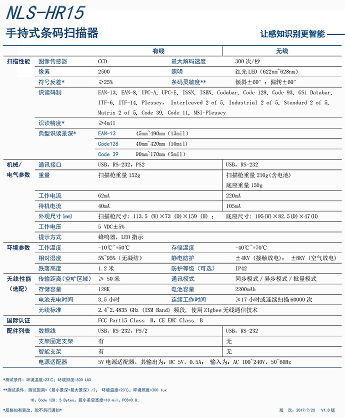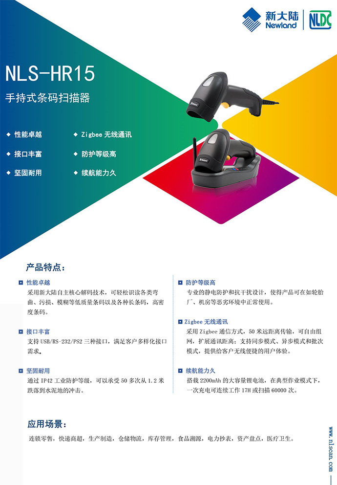 NLS-HR15是新大陆旗舰型一维产品,具备有线和无线两种配置;可识读各类一维条码也可读取PDF417和MicroPDF417堆积式二维条码;NLS-HR15支持USB、RS-232和PS2等接口,结实耐用,具有良好性价比,非常适合在超市、商场和仓库物流等环境中应用。