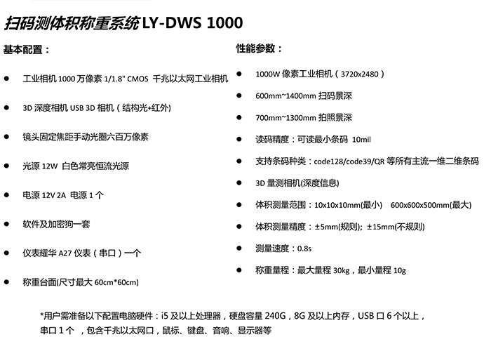 扫码测体积称重系统LY-DWS1000采用高科技3D扫描技术,可快速获取包裹的长宽高、重量、快递单号、图像等信息,提高效率10倍以上。采用模块化设计,配置及维护简单,可帮助企业一次性解决称重、体积测量、条码识别、人工输入等四大基础功能,主要应用于物流配送及仓储环节。机器美观大方、占用面积小、节省场地和人工,大幅度减少了作业空间及操作人员数量。