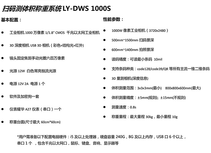 扫码测体积称重系统LY-DWS1000S采用高科技3D扫描技术,可快速获取包裹的长宽高、重量、快递单号、图像等信息,提高效率10倍以上。采用模块化设计,配置及维护简单,可帮助企业一次性解决称重、体积测量、条码识别、人工输入等四大基础功能,主要应用于物流配送及仓储环节。机器美观大方、占用面积小、节省场地和人工,大幅度减少了作业空间及操作人员数量。