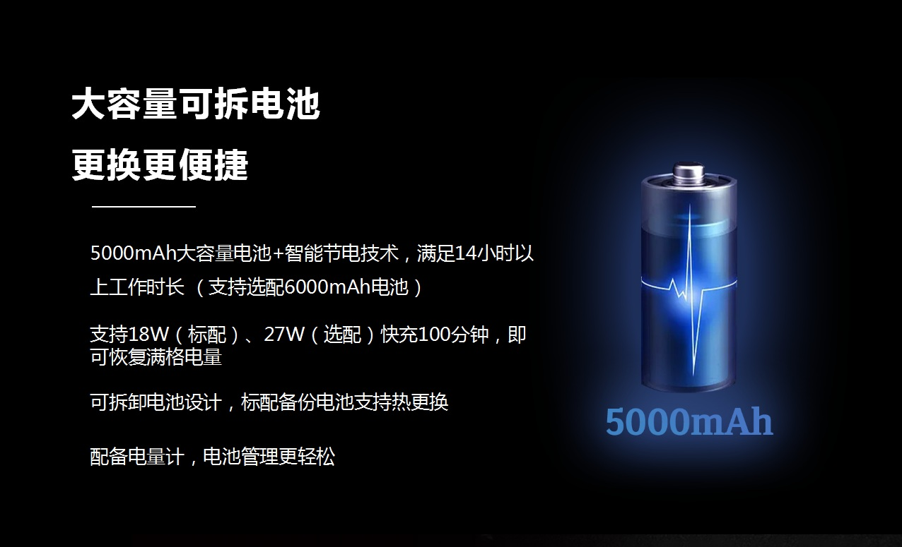 电源(主电池):可拆卸5000mAh锂离子电池,兼容可拆卸6000mAh锂离子电池