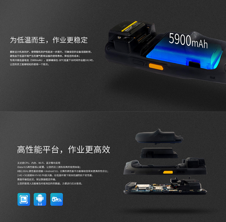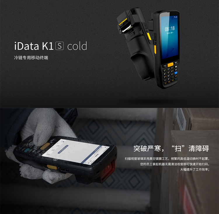 在生鲜食品或是疫苗药品等特殊货物的储存运输过程中,经常需要在冷库中进行存放转运。iData K1系列针对冷链使用环境加以升级,顺势推出冷链专用移动终端iData K1 Cold系列,为冷链场景而生。