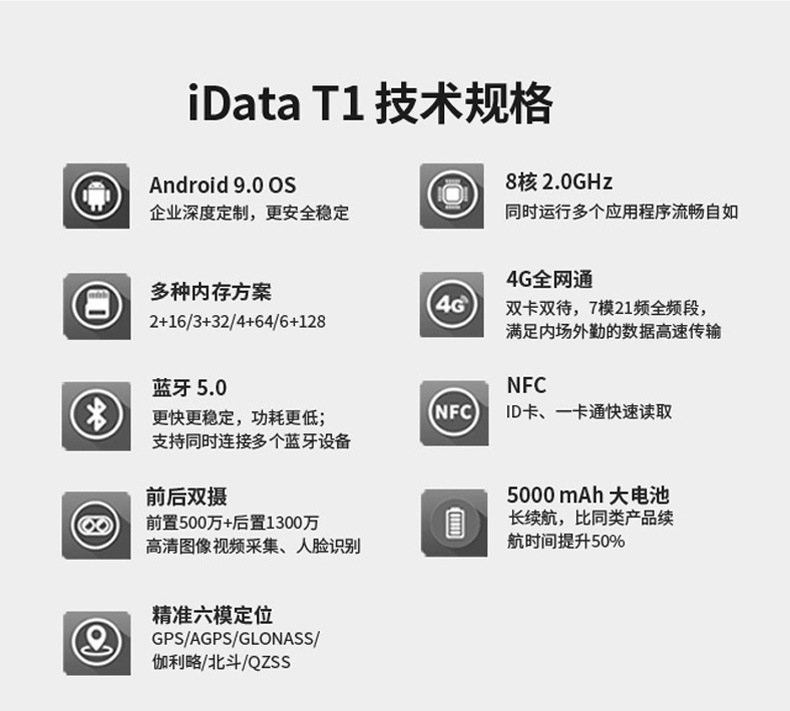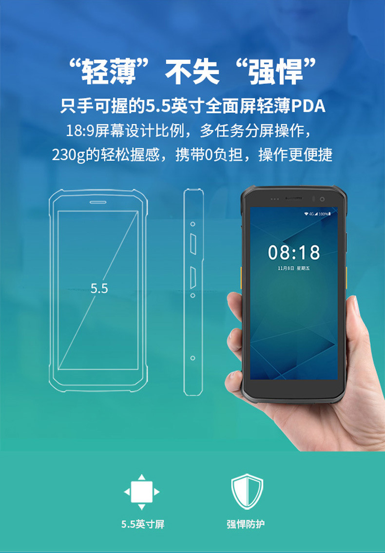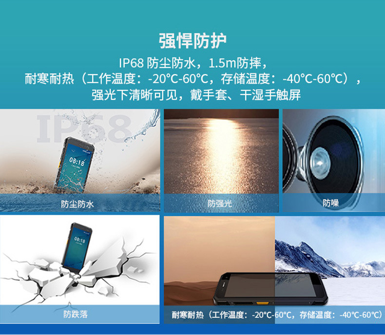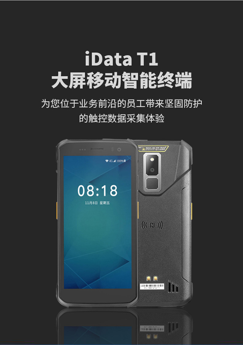 iData T1大屏移动智能工业采集器,机身仅重230g,工作温度-20℃-60℃,IP68防尘防水,1.5m防摔,强悍的防护给您带来极致的使用体验。8核2.0GHz CPU程序运行、扫描、数据传输顷刻即达。