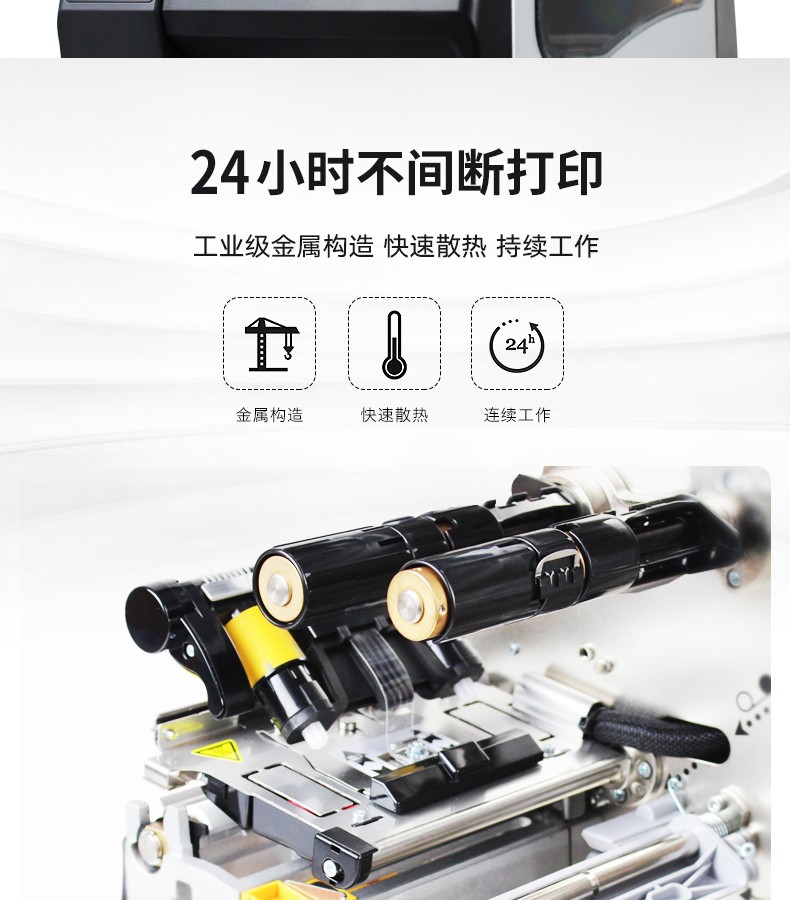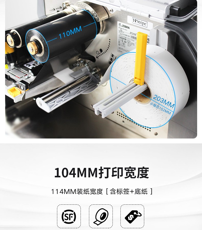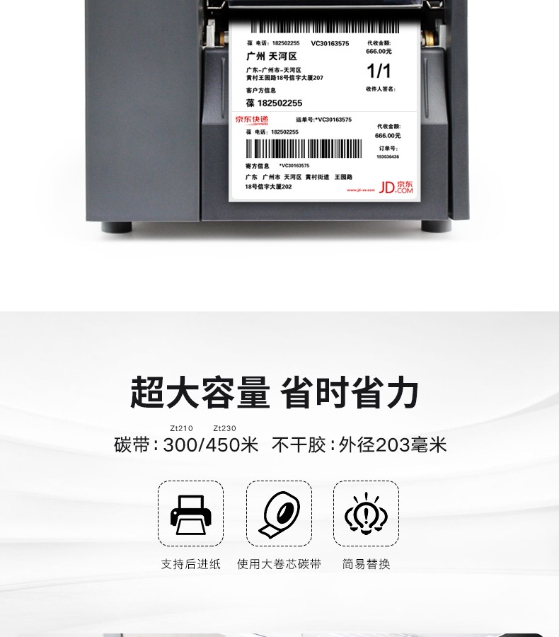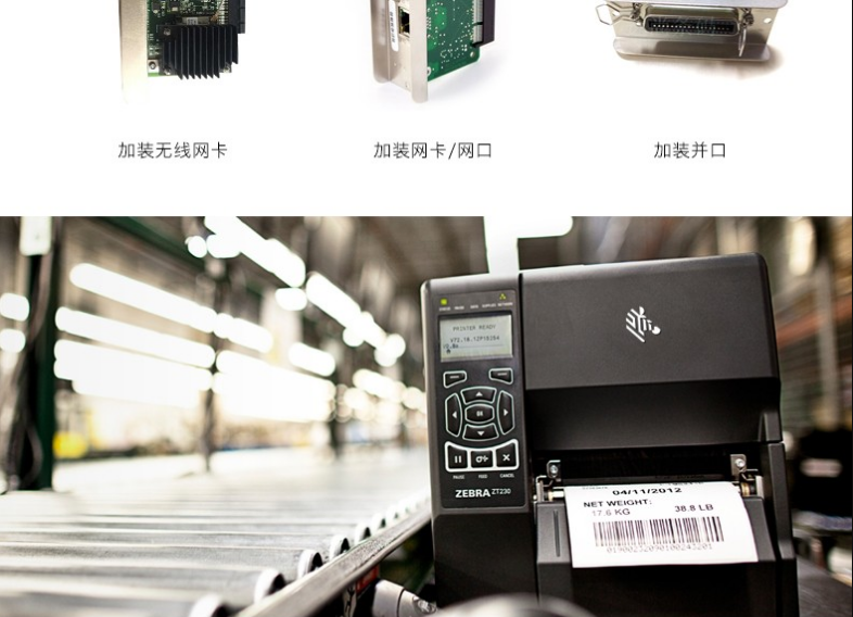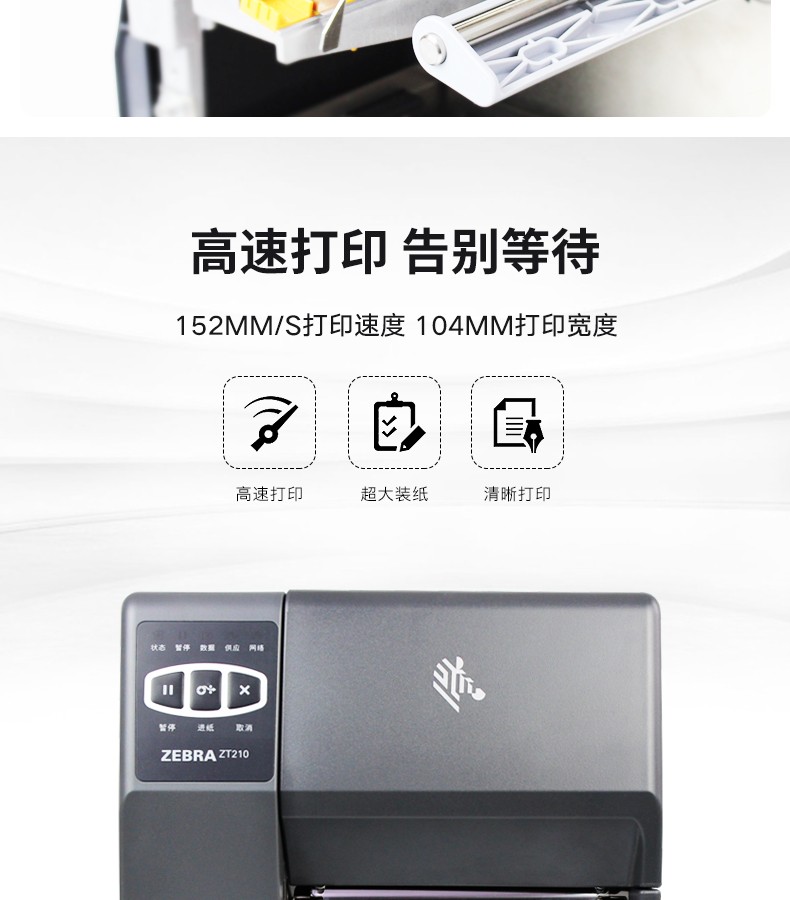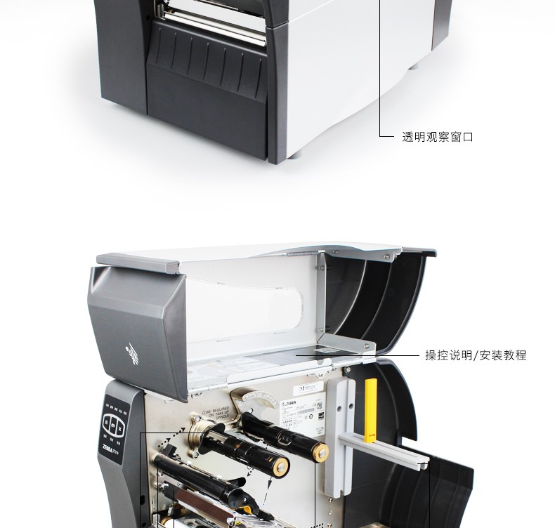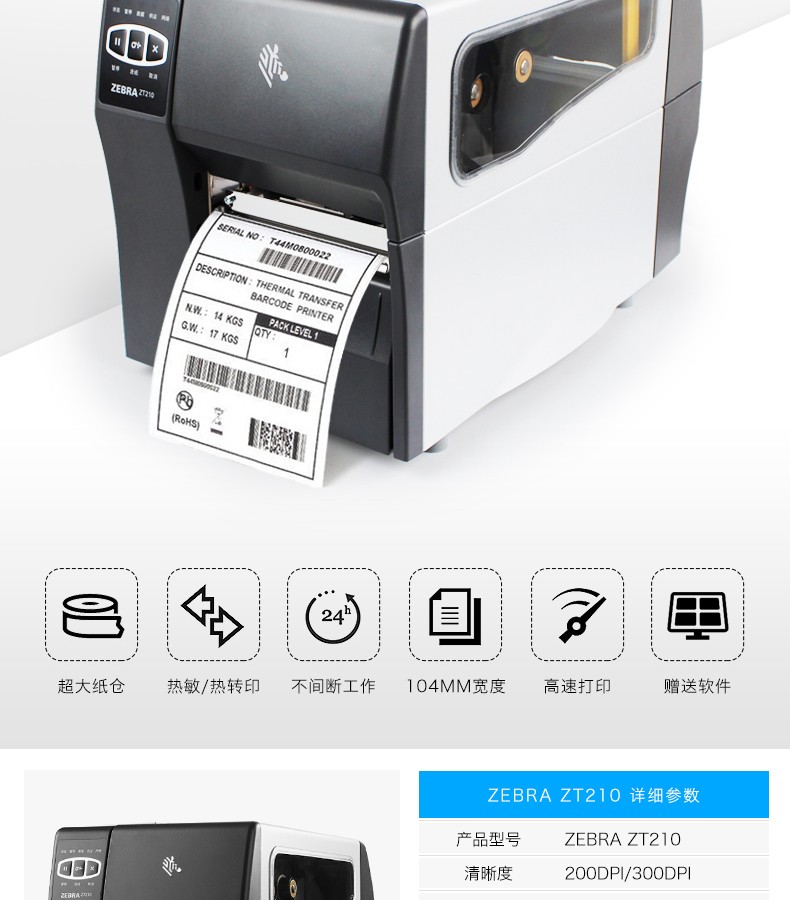 ZEBRA ZT230 工业级条码打印机,具有金属框架和外壳的耐用性,带有基于图标的 LCD 图形用户界面和更大的色带容量,可在苛刻的环境中长期使用。以操作简便作为设计核心理念,更大的碳带容量,快速散热,24小时不间断打印。可应用于服装行业、物流快递、仓储管理等行业。