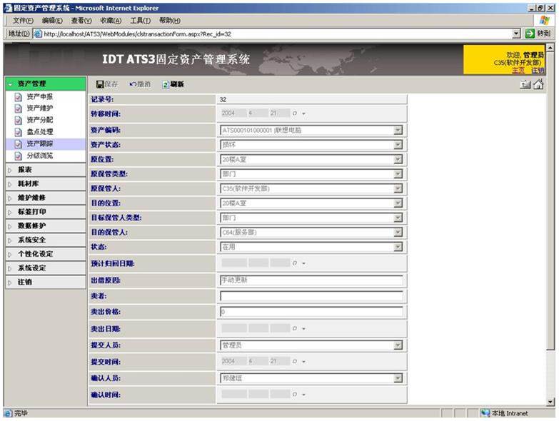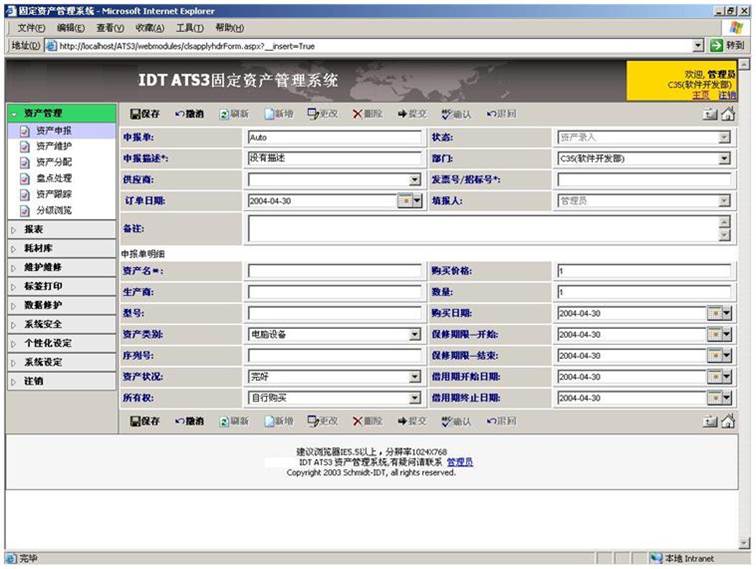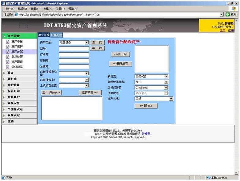 •ATS - 固定资产管理系统是一套基于中小型企业对分散在企业内部的各种固定资产,实现有效管理的应用系统