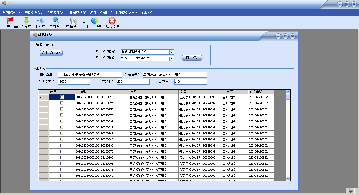 扩展条码追溯查询,除了在国家兽药追溯系统上可查询到,还可在内部ERP 上直接查询,方便企业内部管理及应用扩展。