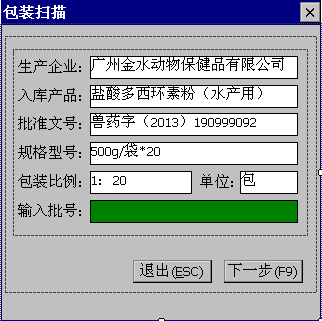 流程:扫描条码 à 核对生产企业及产品基本信息 à 扫描小包装 à 扫描外包装