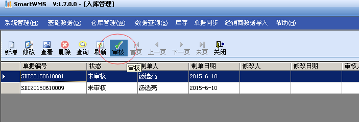 1.3、 完成入库,ERP 审核,更新库存数据。